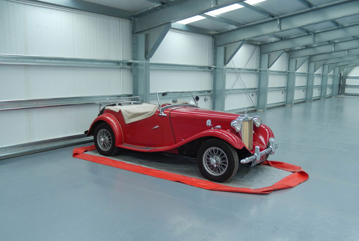 Car kept in dry storage, protected with cloth cover with battery conditioner attached on arrival. This is suitable for owners who may wish to use their cars from time-to-time while in storage.